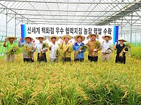 전국 최초 쌀 산업특구’의 고장 여주군에서 지난 29일 여주읍 우만리에서 김춘석 여주군수, 김규창 여주군의회의장, 신세계백화점, 경성미가 관계자등 40명이 참석한 가운데 금년도 첫 벼베기 행사를 실시했다. 금년도 첫 수확된 쌀은 여주읍 우만리 24번지 홍기완(58세)씨 소유의 비가림 시설 990㎡에서 재배된 조생종 올벼로, 지난 3월경 모내기를 실시하여 정…
