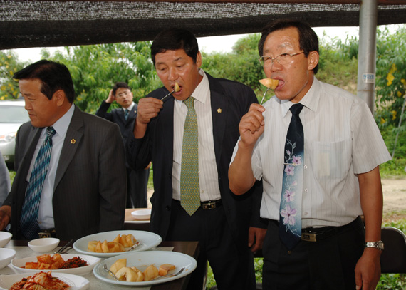 여주군복숭아연구회(회장 김용우)는 24일 여주군 가남면 금당리 영우농장에서 이기수 군수와 권혁산, 김기수 도의원, 김규창 군의회부의장, 원욱희 가남면장을 비롯, 농업관련 기관단체장과 회원 등 50여명이 참석한 가운데 여주복숭아 홍보시식회를 개최했다.