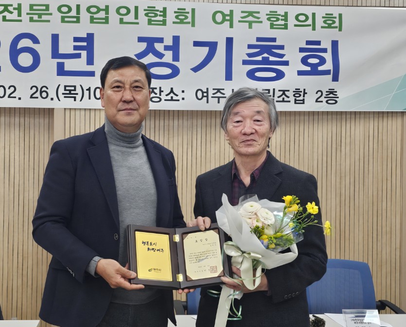 여주시 전문임업인협회는 지난 26일 오전 10시 여주시산림조합 여강정원문화센터 2층 회의실에서 ‘2026년 정기총회’를 개최했다.