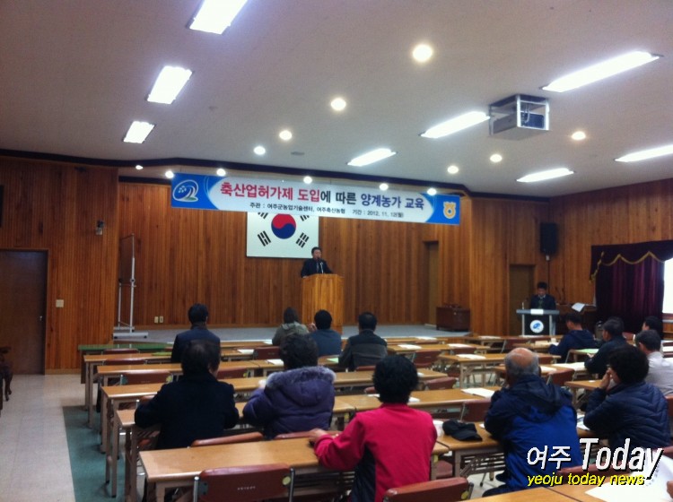 여주군농업기술센터(소장 김완수)와 여주축산농협(조합장 이재덕)은 지난 12일 농업기술센터 대회의실에서 관내 양계농가 35명을 대상으로 축산업허가제 관련 교육을 실시했다.